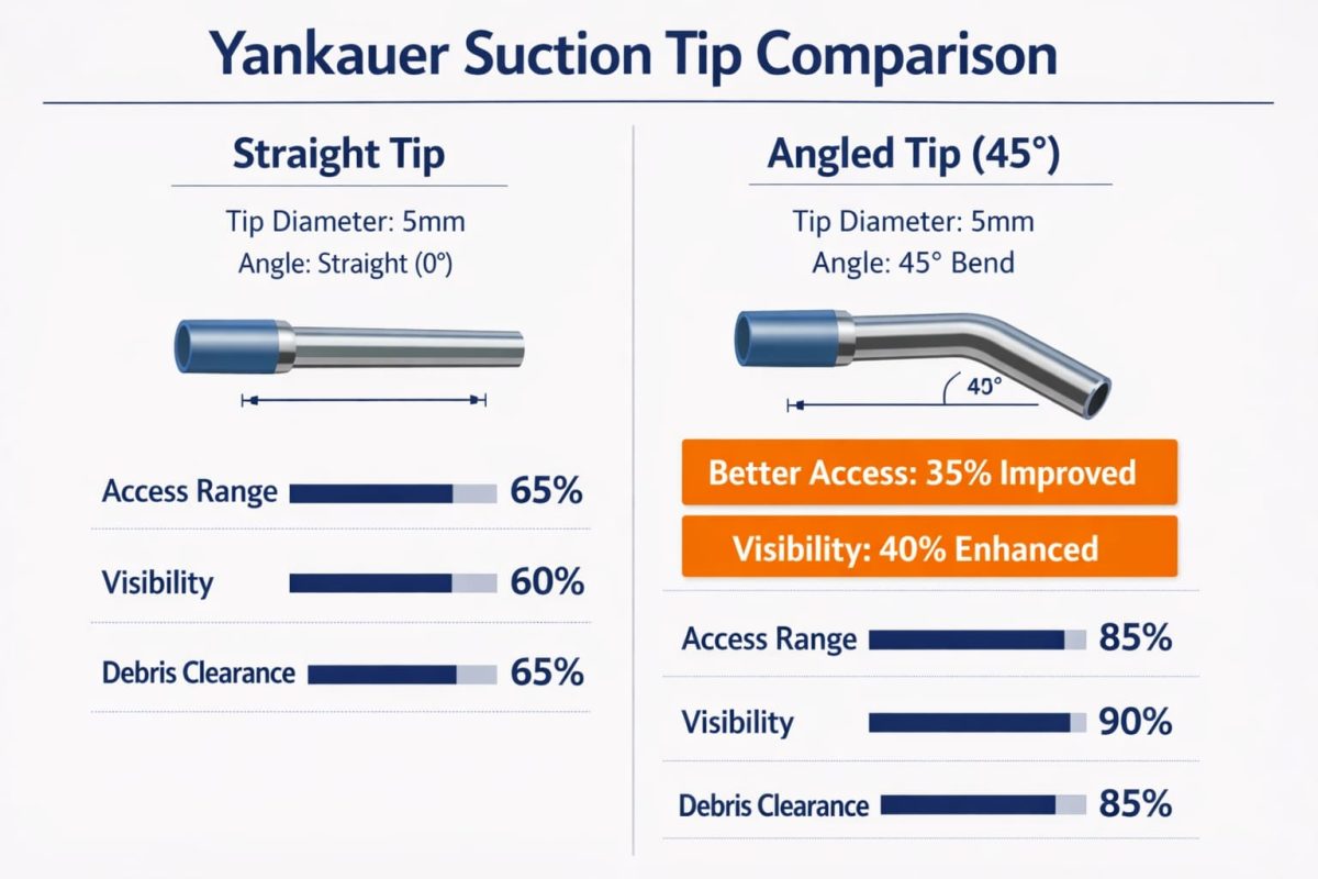 At first glance, the angled tip may seem like a minor design choice—but in practice, it plays a crucial role in improving performance (Yankauer suction tips angled design).