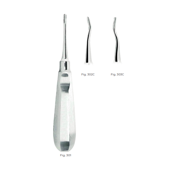 Apexo Root Elevators with stainless steel handle Fig.303C are essential instruments for dental professionals who require precision and control during extractions.