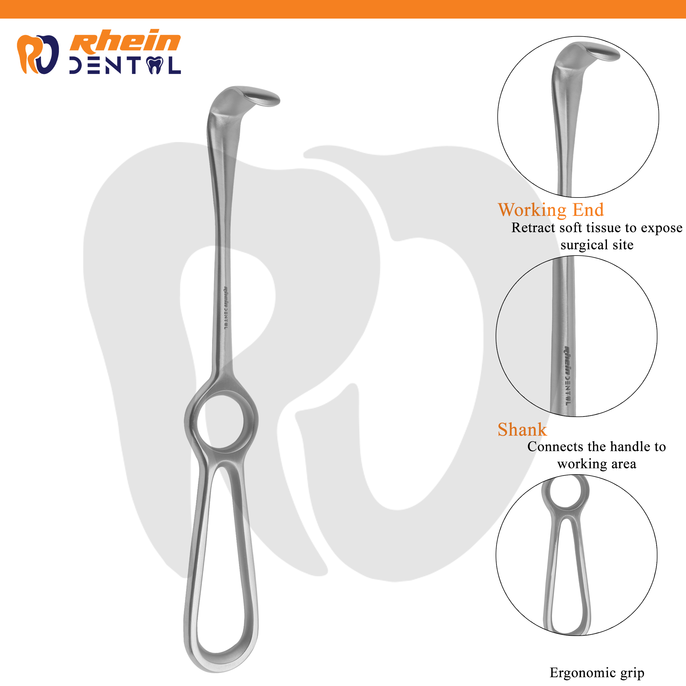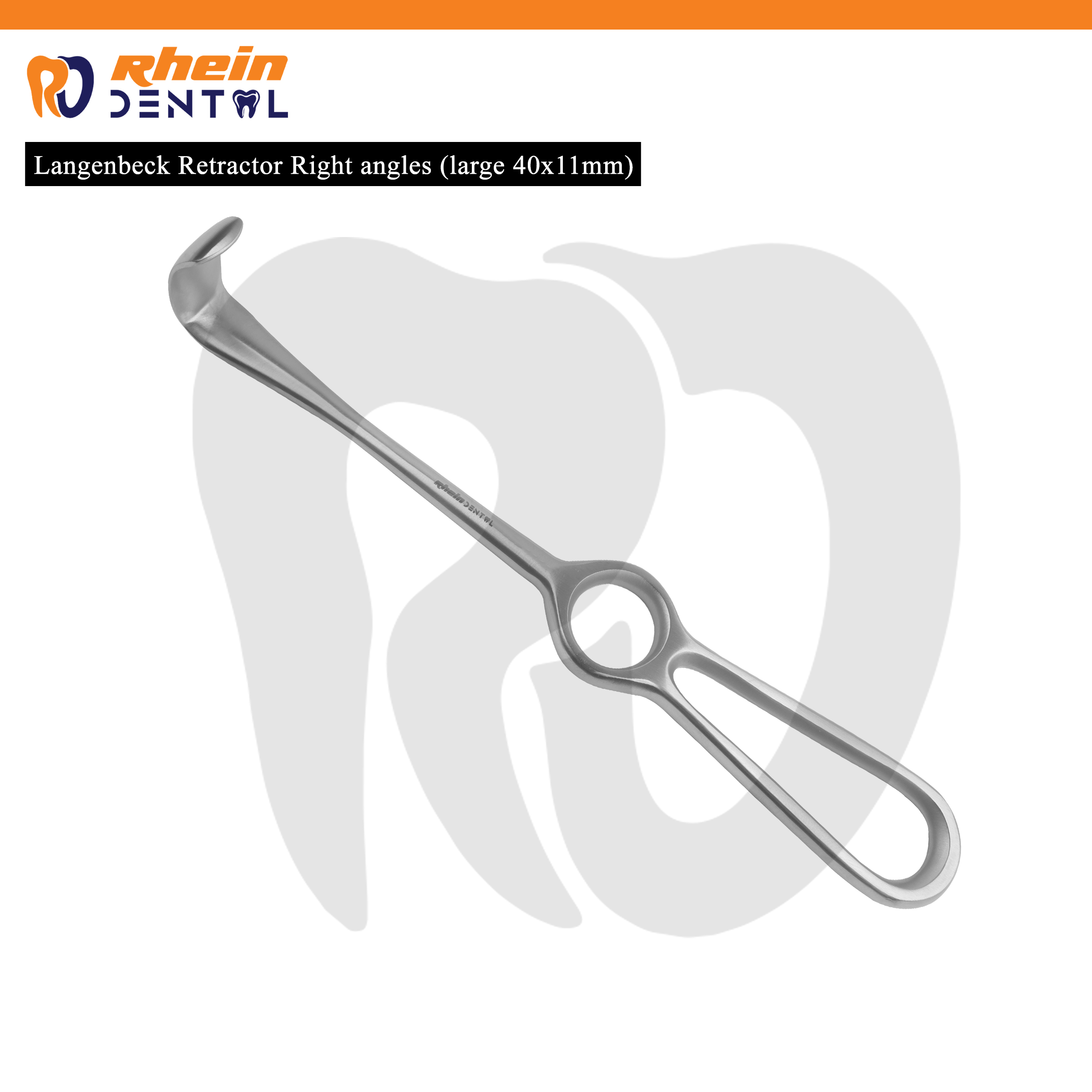 The Langenbeck Retractor Right Angle (Large 40×11 mm) is a stainless steel maxillofacial surgical instrument for precise tissue retraction. Reusable, autoclavable, and ergonomically designed for surgeons in Pakistan.