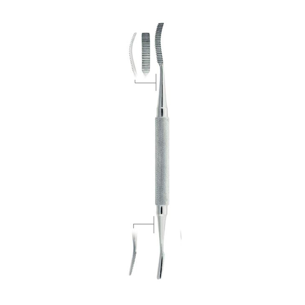 First and foremost, this bone file features a finely serrated surface, which allows surgeons to remove small bone fragments effectively.